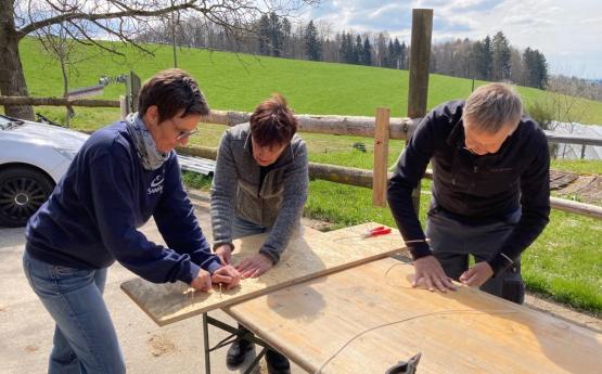 Unter der Einhaltung der Corona Massnahmen hat die Aktion draussen an verschiedenen Arbeitsplätzen stattgefunden. Dabei wurden verschiedene Nistkästen für diverse Vögel hergestellt.