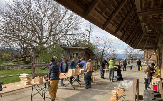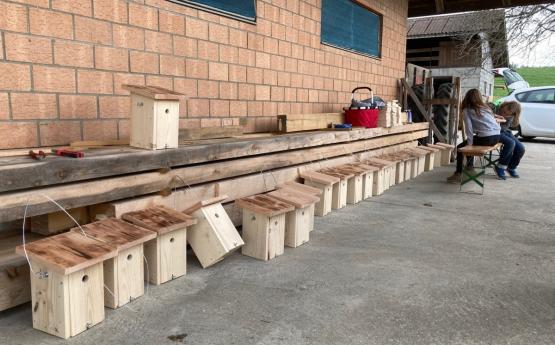 Am Nachmittag vom 10.04.2021 haben wir auf dem Bauernhof von Martin Aebi Nistkästen hergestellt.
