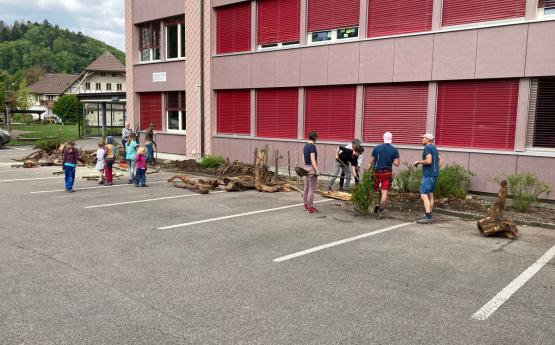 Im Zuge der Neugestaltung der Grünflächen bei Schulhausareal haben wir die Gemeinde angefragt ob wir die Gestaltung der Rabatte auf der Ostseite übernehmen dürfen – dies wurde freundlicherweise bewilligt.